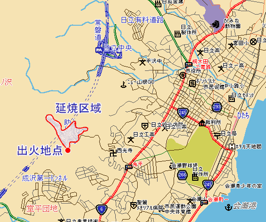 今回の山林火災の原因は、日立署と日立市消防本部の調べでは、日立市助川町の土木会社「セントラル土木」(成田定一社長)で、成田社長と従業員が16日午後、廃材や紙くずなどを焼却炉で燃やしていたところ、火が強風にあおられ、付近の山林に燃え移ったらしい。同署などでさらに詳しく調べています。