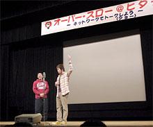 第一部のトークショーには、井手よしひろ県議の後輩にあたる創価大学落語研究会のメンバーが友情出演。会場を大いに沸かしてくれました。