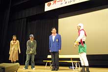 「ネットワークで、トークしよう」と題されたトークショーは、正義の味方光ファイバーマン(?)が登場する寸劇を交え、楽しく進行しました。井手県議が、光ファイバーを活用した新たなネットワーク革命により、介護・福祉・医療・教育などあらゆる行政サービスが劇的に変わる実例を、プロジェクターなどを使って紹介しました。