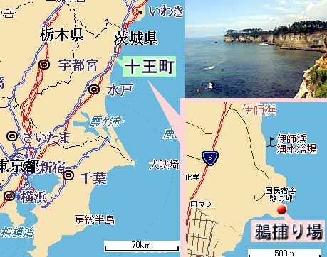 十王町の伊師浜海岸にある全国唯一のウミウの捕獲場所が崩落した問題で、十王町の和田浩一町長は2003年9月17日、鵜捕り場の再建向けて、調査費を計上することを明らかにしました。