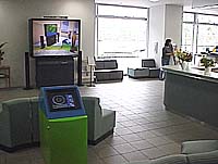 70インチの大型液晶ディスプレーとタッチパネルの卓上盤からなる表示局が、市町村役所や原子力展示施設に設置されています。 各所の測定データをリアルタイムで表示しています。また、監視体制や原子力事業所の情報も提供されています。 |