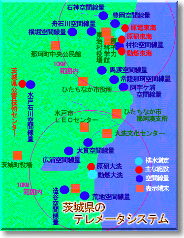 茨城県では、原子力施設からの放射能の影響の有無を確認するため、東海・大洗地区の原子力施設周辺の環境放射線などを常時監視するためのシステムを設置しています。