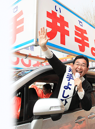 1994年7月、期することあって伊勢甚を退社。12月の県議会議員選挙に公明党の公認を得て立候補しました。多くの方の温かいご支援をいただき当選させていただきました。以来6期連続当選をさせていただきました。
