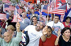 今、アメリカではナショナリズムが高揚しています。国中が星条旗であふれかえっていると言われ、国旗を作る工場はフル稼働だとマスコミが伝えています。星条旗をかざしながら多くのアメリカ人が、テロ行為の報復を語るとき、「復讐(revenge)」などではなく、「処罰(punishment)」ということばを叫んでいると言われます。これは、自分には一切非が無く、一方的に相手を成敗するときに使う言葉です。