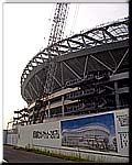 ▲建設が順調に進む 県立カシマサッカースタジアム |