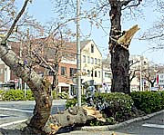 正午過ぎ、日立の目抜き通り「日立平和通」のさくらの巨木の枝が、通りかかった大型トレーラーによって折られてしまいました。