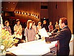 通信・放送機構(TAO)つくば情報通信研究開発支援センターのセンター長・古賀達蔵先生から、TAOの研究内容の説明を受けました。 つくば・けいはんな・北九州をATM155Mbpsの光ケーブルでつないだテレビ会議システムを実際に使いながら、熱く通信・放送の近未来の可能性を語る古賀先生。 非常に有意義な一時を過ごすことが出来ました。 |