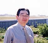 沖縄県情報政策室の前で新城主幹と