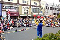 「ひたち国際大道芸」は、JR日立駅前と常陸多賀駅前が舞台。駅前通りを歩行者天国にして、ジャグリング、曲芸、マジック、パントマイムなど大道芸を繰り広げました。今年は初参加8組を含む過去最多の23組が出演し、妙技、珍芸の数々が披露されました。