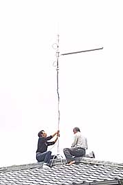 日立IT市民の会の野地会長が提唱する無線によるインターネットの中継装置を井手県議の自宅に設置し、実証実験を開始しました。
