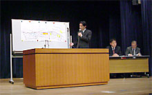 大阪府では産業支援課長より大阪府の産業活性化策を伺いました。大阪府は、4つの構造改革特区が認められ、バイオやナノテクといった新産業の育成や関空という24時間空港を活用した人・物の交流拠点作りなどが目的となっています。