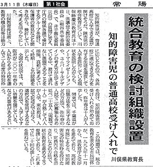 1 thought on “知的障害児の普通高校進学問題で検討組織/地元紙が報道