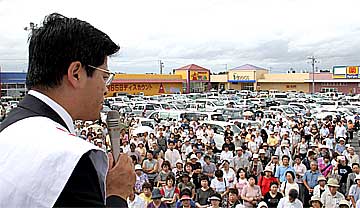 9月7日、比例区北関東ブロック公明党の街頭遊説が行われました。この日は午前9時に高萩市内を皮切りに、日立駅中央口、ひたちなか市馬渡、常陸大宮市ジャスコ駐車場前、笠間市ジャスコ駐車場横、下館市駅前の5カ所で行われました。井手よしひろ県議は、高萩から笠間までの4箇所で応援演説並びに司会進行を務めました。