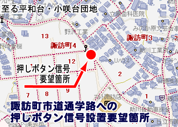 日立市諏訪町4丁目の市道に「押しボタン信号」設置の要望が、地元住民より提出されています。