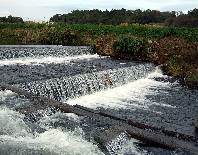 写真 日立・十王の話題 十王川にサケが遡上 管理者 2006年10月21日 日立市の北部、旧十王町の中心部を流れる十王川にサケが帰ってきました。10月初旬より、サケの遡上が確認されていましたが、10月20日午後には、かなりの数のサケが上流を目指し、急流を遡る姿が確認できました。 最大の難所ともいえる「十王堰」を越えたサケも、肉眼で3匹確認できました。 写真は、その堰を遡る途中で力尽き、流れに翻弄されるサケの姿です。10月20日、午後3時11分に撮影しました。写真をクリックすると、堰の全体像がご覧になれます。 参考:十王川を楽しむ会のブログページ 印刷する 🖨 閲覧数 226 Continue Reading Previous: さくらシティ日立の概要発表、記者会見行われるNext: 2006年10月21日(土) 晴れ コメントを残す コメントをキャンセルメールアドレスが公開されることはありません。 ※ が付いている欄は必須項目ですコメント ※ 名前 ※ メール ※ サイト 次回のコメントで使用するためブラウザーに自分の名前、メールアドレス、サイトを保存する。 Related Stories ドローン 動画 日立・十王の話題 【いばらきドローン散歩No.52】日立の海岸「冬旅・空撮」 管理者 2026年1月7日 99.8%ショック 日立・十王の話題 行財政改革 日立市の経常収支率が1.9ポイント改善 管理者 2025年10月17日 2025県知事選 地方創生 日々の話題 日立・十王の話題 知事選公約:“パンダ”はダメで“コアラ”は良いのか? 管理者 2025年9月1日