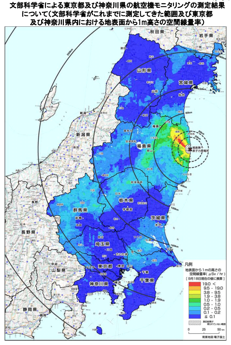 文部科学省は10月6日までに、埼玉県と千葉県、東京都、神奈川県の航空機モニタリングの測定結果について、空間線量率分布状況や放射性セシウムの蓄積量をまとめたマップをホームページに公開しました。