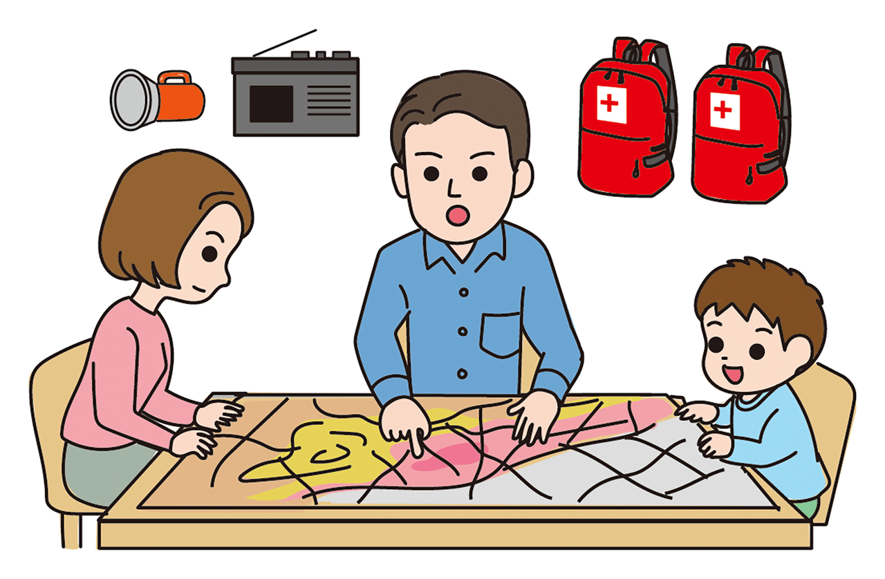 ・ハザードマップ等により自宅・施設等の災害リスク、指定緊急避難場所や避難経路、避難のタイミング等を再確認するとともに、避難情報の把握手段を再確認・注意するなど、避難に備え自らの避難行動を確認。