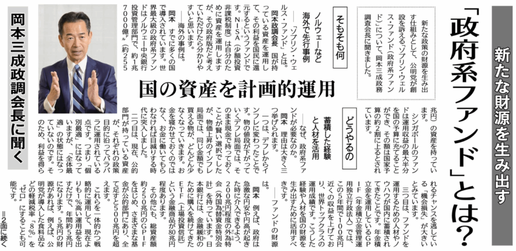 いま、公明党が提唱している「日本版ソブリン・ウェルス・ファンド(政府系ファンド)」が注目を集めています。