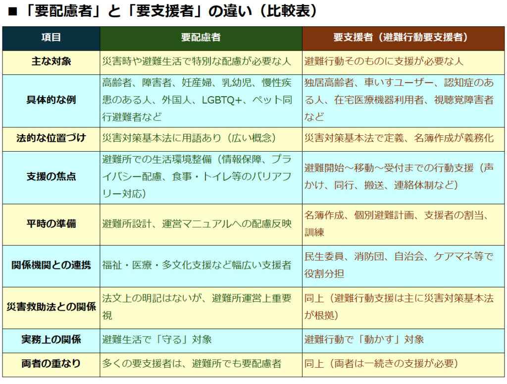 防災士などの活動を行っていると、「要配慮者」と「要支援者」ということばをよく耳にします。