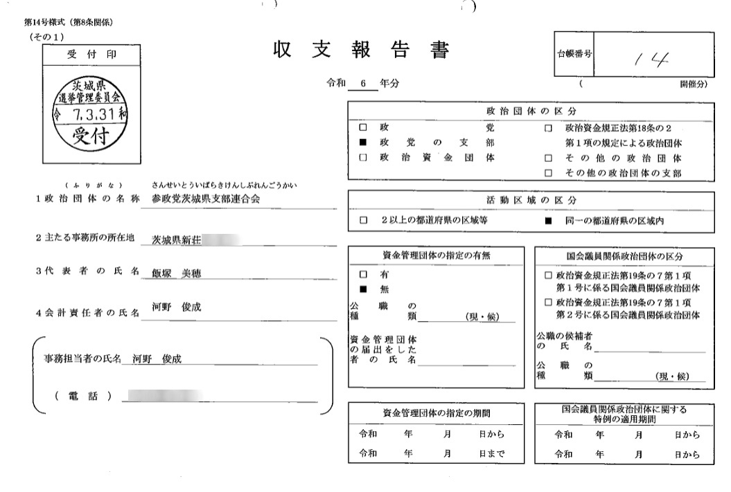 • 参政党茨城支部の令和6年分“政治資金収支報告書”を検証