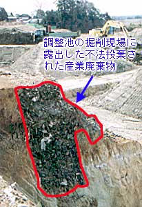 井手県議は、97年10月20日に開催された予算特別委員会で、不法投棄問題を取り上げて、その対応を県当局に迫った。 当時、県土木部は、伊奈・谷和原丘陵部特定区画整理地域内に合計で8カ所、面積で5.7ヘクタールの地域に、産業廃棄物が不法に投棄され、その処理に20億円以上の費用が掛かると回答しました。 それから2年半が経過し、井手県議は、この3月に再び現地を視察調査しました。 東楢戸地区の調整地の工事現場では、掘削した法面から、不法に投棄された廃棄物がまるで地層の一部のように露出しています。 廻りには異臭が漂い、作業員の方も防護マスクを着用して作業を行っている状況に驚かされました。 掘り出された廃棄物も、コンクリート片や鉄筋、家庭用のゴミなどから、アルミの精錬の際、発生するアルミナの固まりなど、多岐にわたり、その規模の大きさに、改めて大きな憤りを感じました。 当初、平成10年、11年度の2カ年で廃棄物の処理を完了されるとされていたましたが、予算の関係と作業の遅れから、2000年度も引き続き継続して作業が行われることになりました。 そして、3月17日に開催された予算特別委員会では、土木部長より、不法投棄の処分費用が40億円に達することが明らかにされました。 また、その費用負担に関しては、不法投棄をした業者に対し、2億円の損害賠償の訴訟を提起していることが、企画部長より明らかにされました。また、産業廃棄物が埋められていることを知りながら、県に用地を売却した地権者からは、賠償金を請求することとなります。さらに、産廃が埋めれれている土地の地権者には、区画整理事業の中で一般の減歩率(40%)より厳しい減歩率が適用されることになります。 しかし、こうした措置によっても、40億円という巨費を補うことは出来ず、県が先買いをした土地の売却益で、差額を補填する事になると思われます。 |