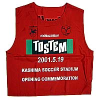 アントラーズ全選手のサイン入りの赤いビブスを配布