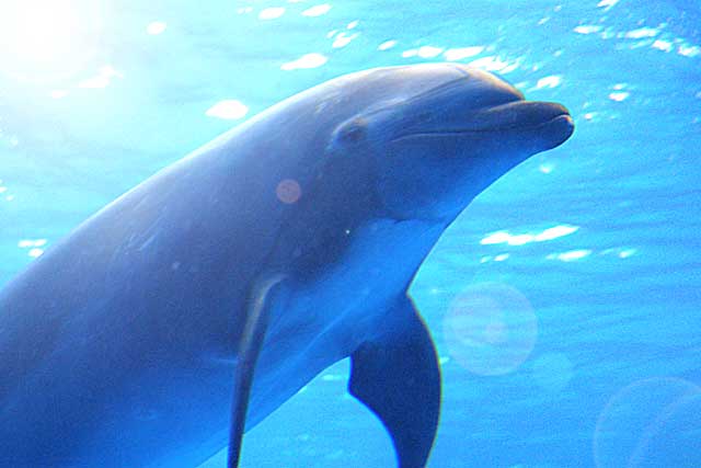 見逃してはいけないのが、「オーシャンシアター」の下に階にあるイルカショーのプールが見られる空間。イルカの華麗な動きやかわいらしい鳴き声が聴けて、時の過ぎるのを忘れて大いに癒されます。