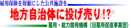 厚生労働省所管の特殊法人「雇用・能力開発機構」(旧雇用促進事業団)が、所有してきた福利厚生施設を地元の自治体に、非常に安い価格で売却を進めています。 例えば、日立市で多くの市民に親しまれている「ホリゾンかみね」や「鳩ヶ丘体育館」などが市に売却されました。売却価格は、ホリゾンかみねが10万5000円、鳩ヶ丘体育館は何と1万500円です。