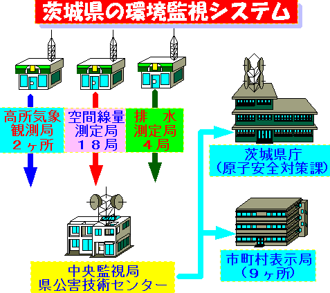 このシステムは、大気中の空間ガンマ線量率や事業所の排水中の放射能濃度などを自動測定し、データを県公害技術センター(水戸市石川)に伝送して、連続的に監視するものです。
