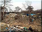 猿島郡境町大歩の農地。暴力団組長が実質的に経営する土木業者により、2000年2月〜4月にかけ、県の許可を受けずに、プラスチック廃材やコンクリート片などの産廃10トンダンプ310台分(約3000立方メートル)が埋め立て処分された。![]() 岩井市半谷の不法投棄と推測される現場を調査