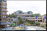 日帰り温泉施設を現地調査 十王町では、伊師浜国民休養地に日帰り温泉施設「鵜来来の湯・十王」を建設中です。 4月28日(土)にオープンが決まり、最終的な内装や設備の搬入が急がれています。 施設の規模は、鉄筋コンクリート3階建て2700平方メートル。入浴料は平日800円、土日祝祭日1000円です。 ![]() ●十王町温泉保養施設「鵜来来の湯・十王」の正面 ![]() ●「鵜の岬」本館側から「鵜来来の湯・十王」を見る |