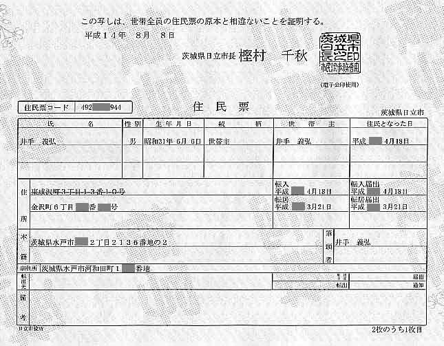 住基ネットの話題がマスコミで数多く取り上げられています。その多くが住基ネットの危険性を指摘する内容です。井手県議は日立市役所を訪れ、市民課長より日立市の住基ネットへの対応をヒアリングしました。 その中で、ネットの独自性(インターネットなどのほかのネットと接続されていないこと)や管理の徹底などを改めて確認しました。 特に、自ら住基コード付きの住民票を申請し、住基コードが家族でも連番ではなく、全くランダムな数値であることを知り、かなり検討を積み重ねられたシステムであることを再認識しました。 ※住基コード付き住民票を申請するためには、写真が貼付された身分証明書が必要です。(一般の住民票には必要がありません) |