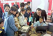 式典終了後、インターネットの体験教室やリサイクルパソコンを分解し、パソコンの仕組みを説明したり地元の子ども達や参加者が一体となって、楽しい一時を過ごしました。更に、会員有志が手打ちそばを披露し、これからの活動の展望や自己紹介などが交わされ、活気あふれる催しとなりました。